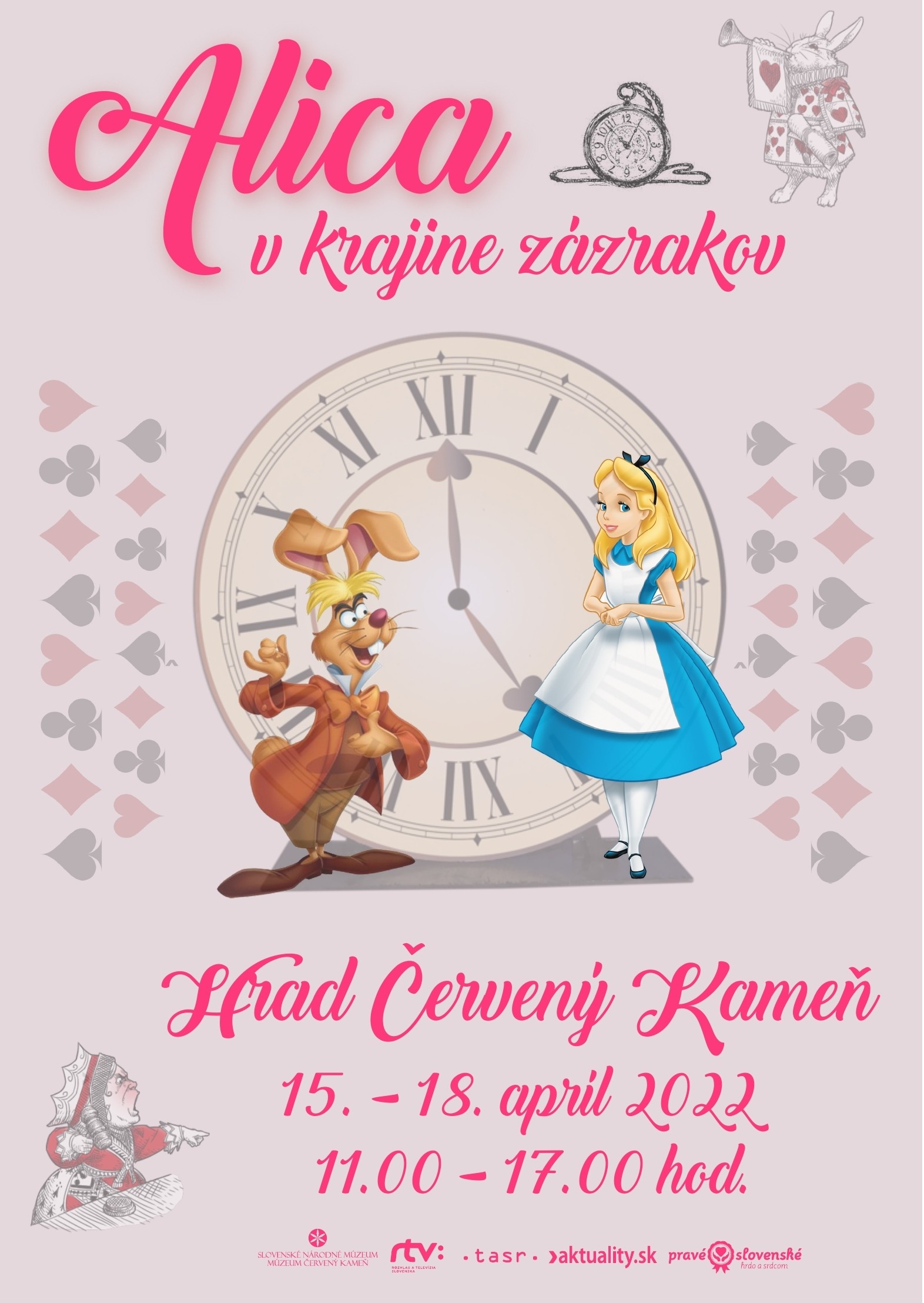 SNM – Múzeum Červený Kameň Vás pozýva na divadelné prehliadky Alica v krajine zázrakov. Stretnúť sa s Alicou môžete počas veľkonočných sviatkov 15. – 18. apríla 2022. Vydajte sa spolu s Alicou do krajiny zázrakov a prežite spolu s ňou nezabudnuteľné dobrodružstvo.