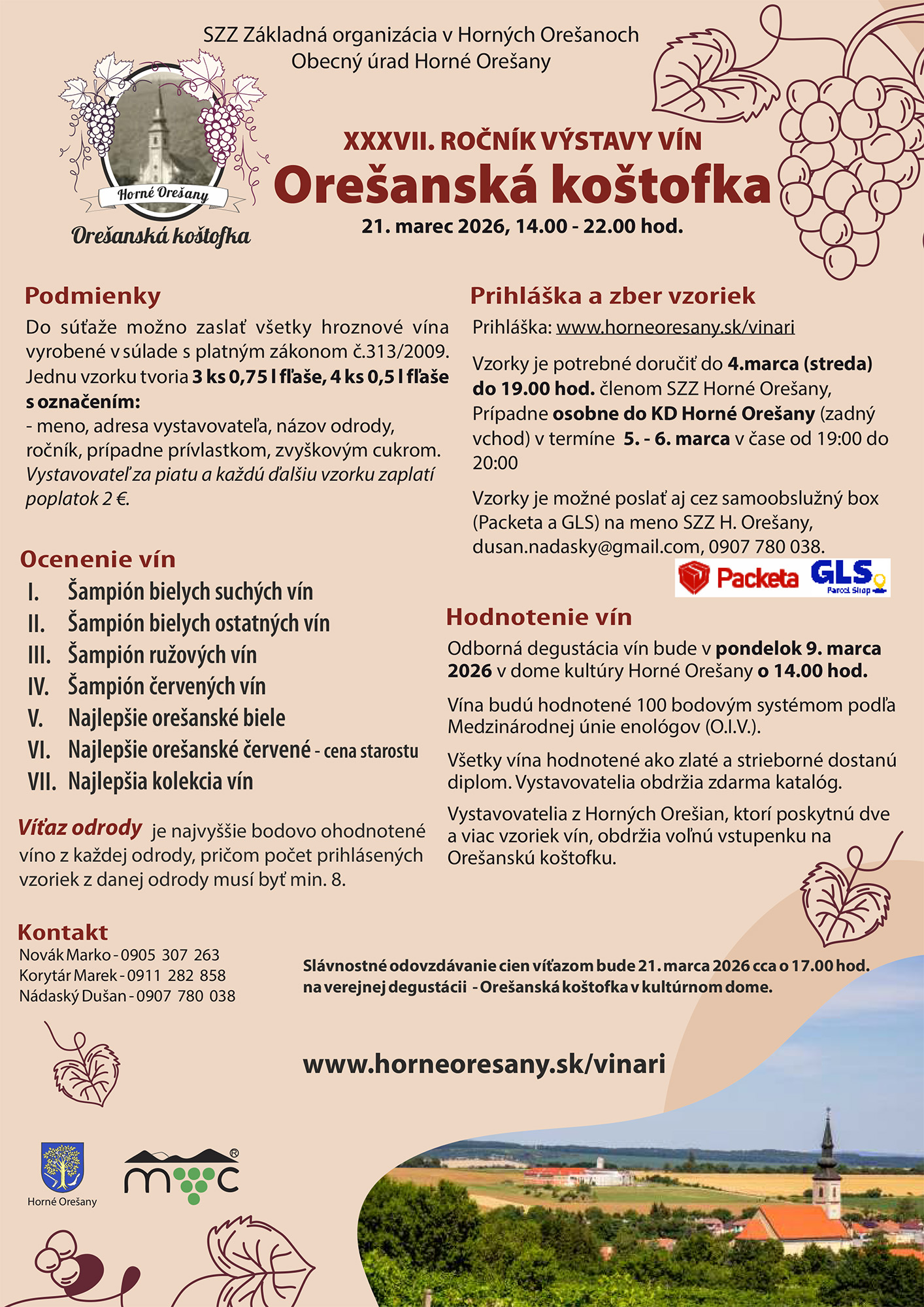Slávnostné odovzdávanie cien víťazom bude 21. marca 2026 cca o 17.00 hod. na verejnej degustácii - Orešanská koštofka v kultúrnom dome.