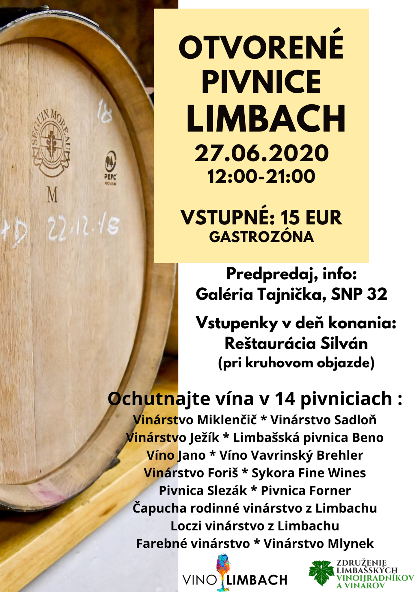 Združenie Limbašských vinohradníkov a vinárov Vás srdečne pozýva na podujatie OTVORENÉ PIVNICE LIMBACH